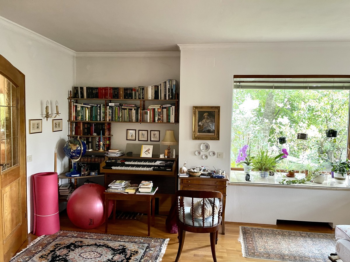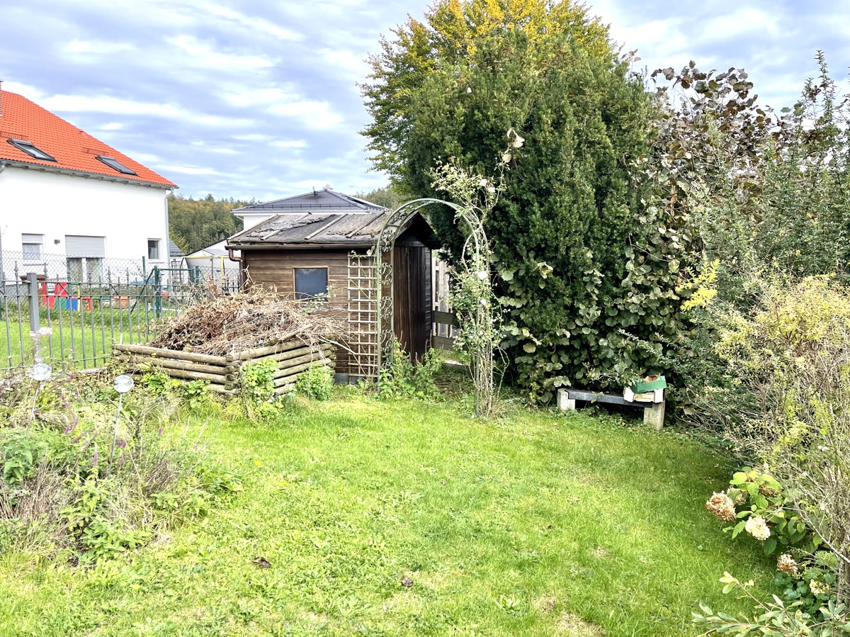 Umrundet wird das Einfamilienhaus von einem großen, eingewachsenen Garten mit Gartenhütte.