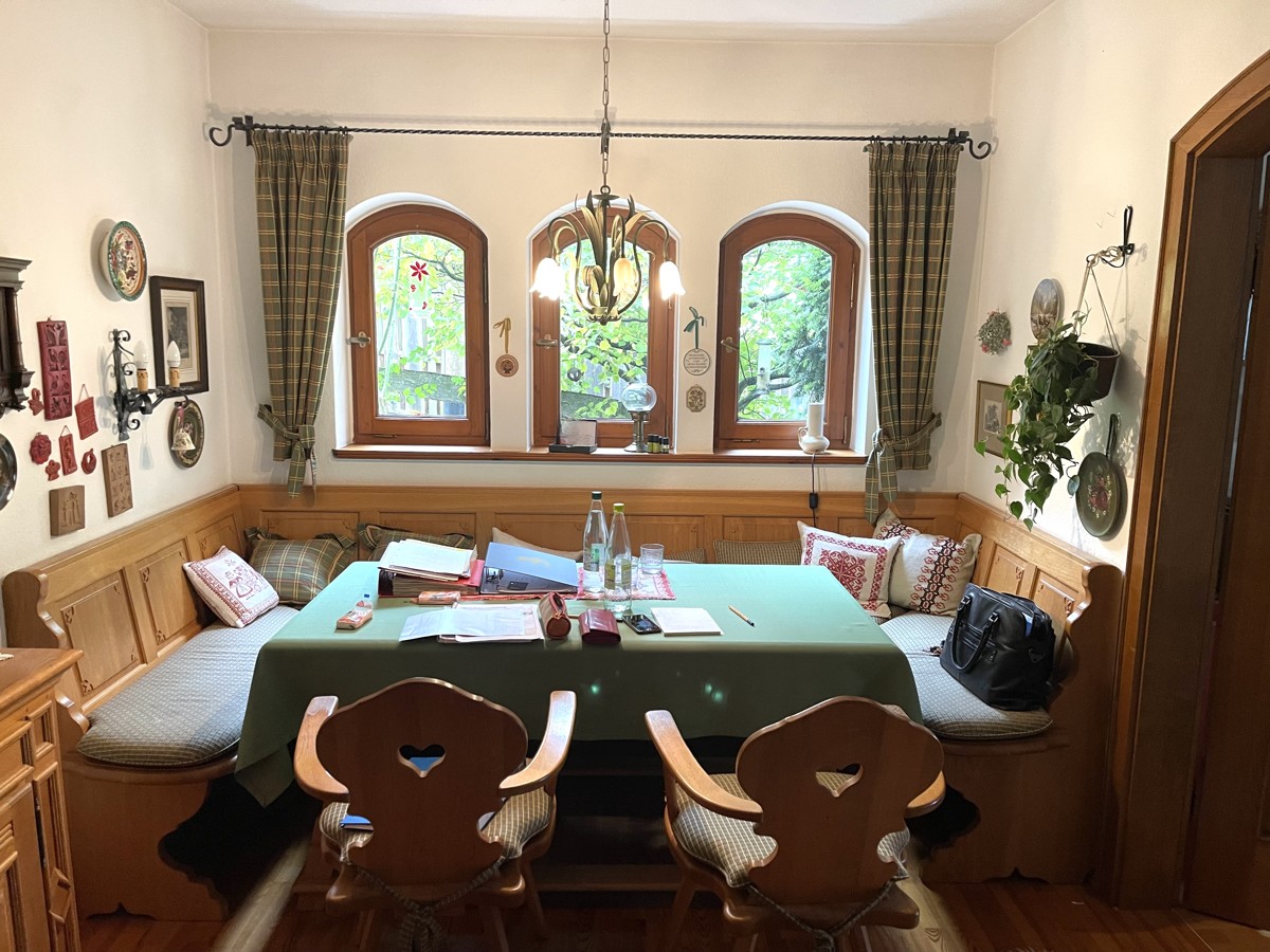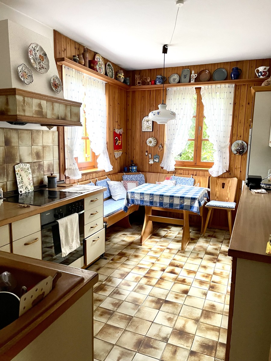 Die ca. 103 qm Fläche verteilen sich über eine Diele, ein geräumiges Wohnzimmer mit Durchgang zum Esszimmer mit Kachelofen, eine Küche, eine Speisekammer, zwei Schlafzimmer, sowie ein Tageslichtbadezimmer und ein Gäste-WC.