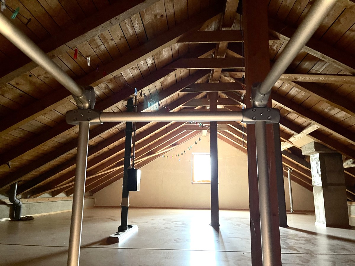 Der Dachboden mit Zugang über eine Einschubtreppe sowie der Keller bieten viel Stauraum. Die Garage ist durch die Hanglage in den Keller integriert.