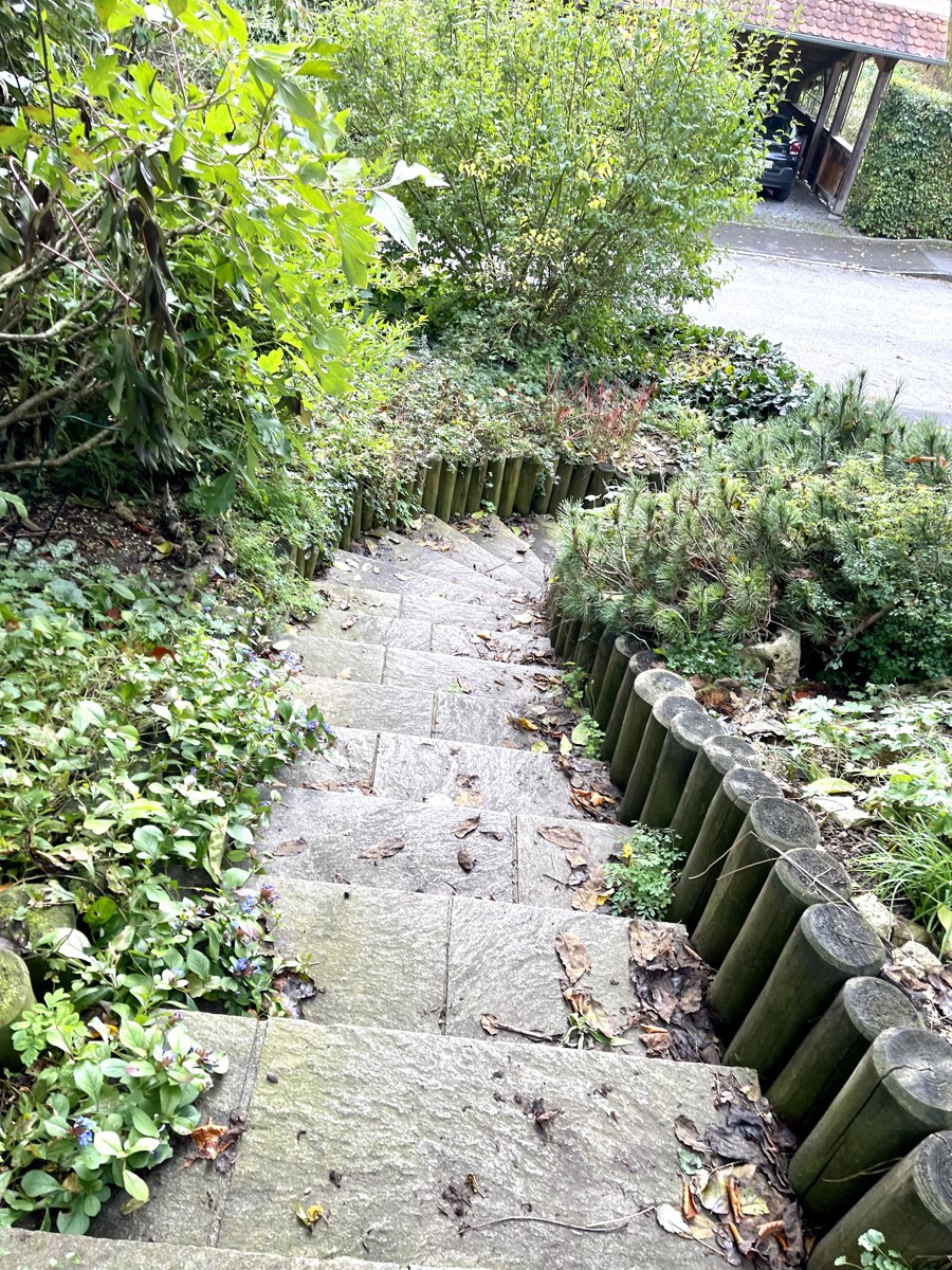 Dieses charmante Einfamilienhaus betreten Sie über eine schöne Außentreppe.