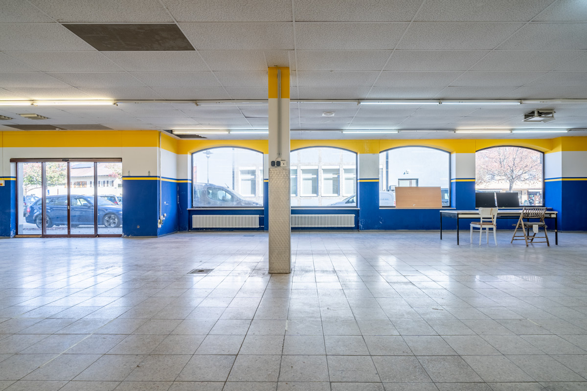 Der Raum verfügt über 1 großen Ausstellungsraum mit 6 großen Schaufenstern und einer automatischen 2-teiligen, automatischen Eingangstüre aus Glas. In dem Raum befinden sich 9 Säulen. Eine große Garage für die Anlieferung nutzbar, ist mit einem Rolltor vorhanden. Ein Büroraum sowie eine Toilette mit Waschtisch und Duschvorrichtung runden das Angebot ab.